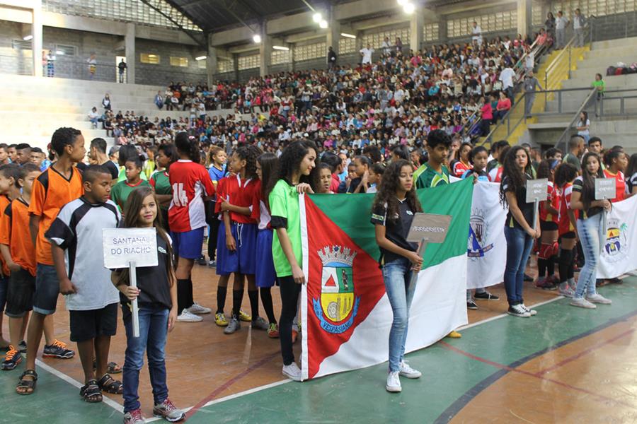 As delegações de cada cidade desfilaram pelo ginásio e cantaram o hino nacional. Também teve acendimento da pira olímpica e juramento dos atletas antes do início da competição estudantil. E antes da bola rolar ainda teve tempo para apresentações artísticas na quadra da escola.
